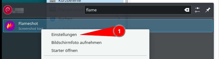 Flameshot kann in einem gewissen Rahmen auf die eigenen Bedürfnisse hin angepasst werden. Mit einem Rechtsklick auf den Starter, erscheinen die dazu notwendigen Einstellungen: