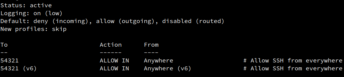 ufw allow 54321 comment "Allow SSH from everywhere"